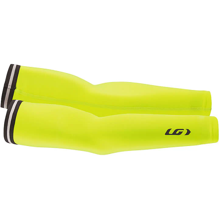 The Louis Garneau Arm Warmers feature HeatMaxx fabric that has a soft brushed inside to wick moisture while retaining heat. The biceps silicone grippers hold these warmers in place yet they're easily removed and stashed in a pocket or pack when things warm up. Reflective logos offer safety.