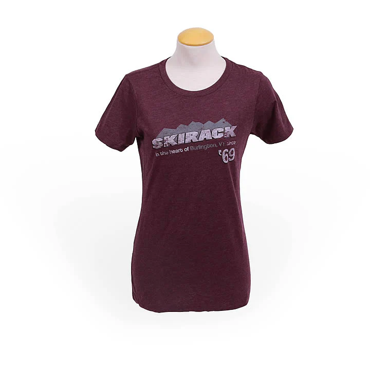 The women's Skirack Since 1969 Tee reminds of us of our roots in the beautiful city and state. Skirack first opened its doors in 1969 just a few blocks from its present location at the corner of Main and Pine streets in downtown Burlington, Vermont. Over the years, we have undergone many changes and all with one goal in mind - to provide the finest outdoor goods and services. We have the pleasure of doing business in what many have termed "one of the most livable cities in America." A short walk from our front door is Lake Champlain with the Adirondack mountains of New York as a backdrop. Skirack, in the heart of Burling, VT since 1969.